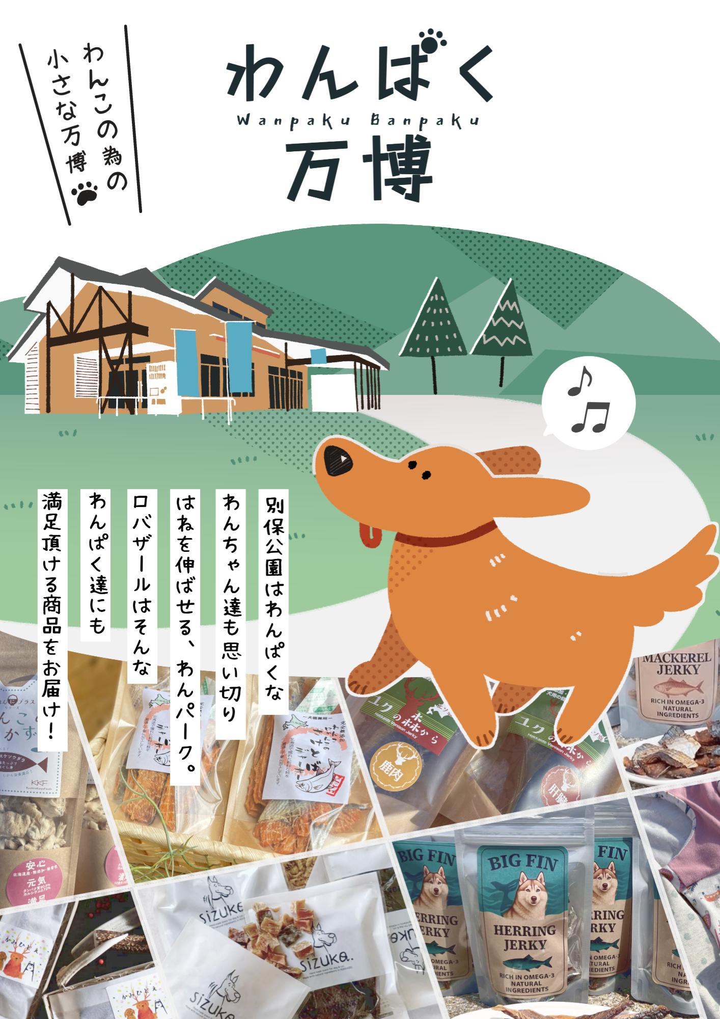 ロ・バザールの物販棟(ロバの市)にてワンちゃんのためのイベント「わんぱく万博」を開催しております⭐